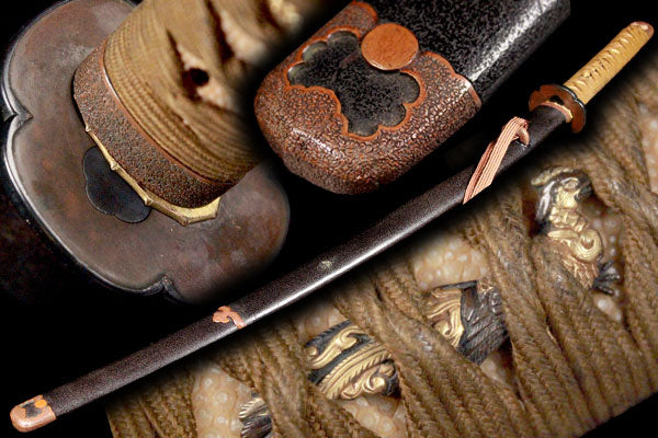【喜】鳳凰目貫!! 素銅金具一作のかなり素晴らしい半太刀拵え‼ 赤銅覆輪素銅鍔!! 金着せ切羽!! 武具刀装具!! 111351