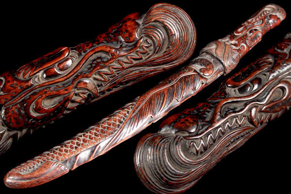 【喜】総純木‼ 素晴らしき細密龍彫り!! 最高級龍拵え!! 短刀拵え!! 刀装具!! 111128