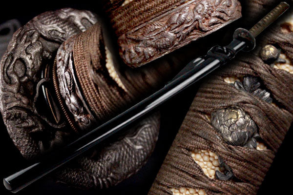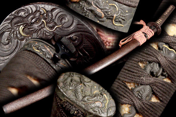 【喜】赤銅縁頭龍大目貫!! 茶松螺鈿鞘!! 雲龍鍔!! 時代刀用拵え‼ 刀装具!! 111238-111125