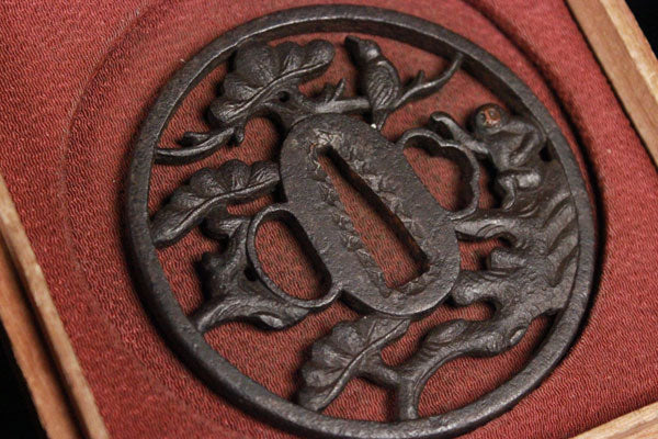 【喜】正虎‼ 透かし鍔!! 大鍔‼ 刀装具武具!! 木箱 111701