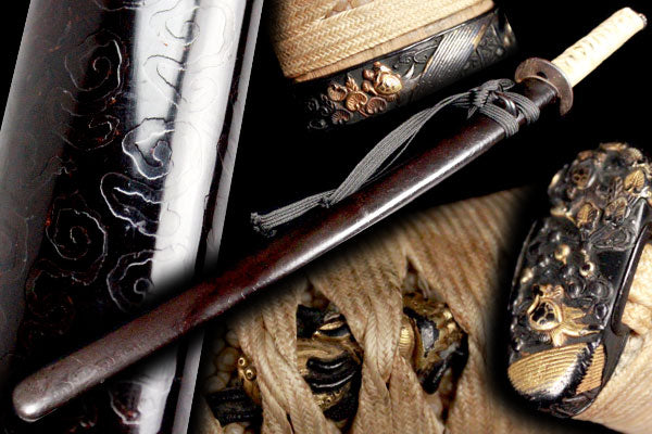 【喜】北斗七星隠し蒔絵鞘!! 素銅の金具素晴らしき金具!! 銅に鉄の三枚太刀鍔!! 素晴らしき太刀鞘拵え‼ 刀装具!! 110608