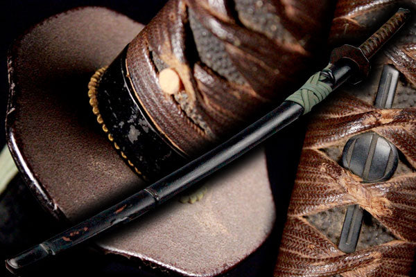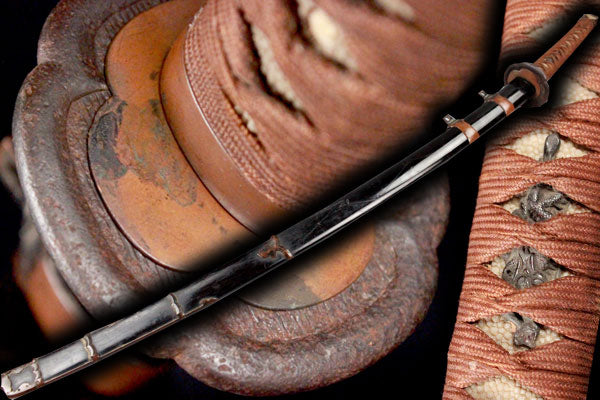 【喜】革柄‼ 赤銅無地縁頭柄!! 変わり柾目!! 太鞘拵え‼ 刀装具!! 109123-111261