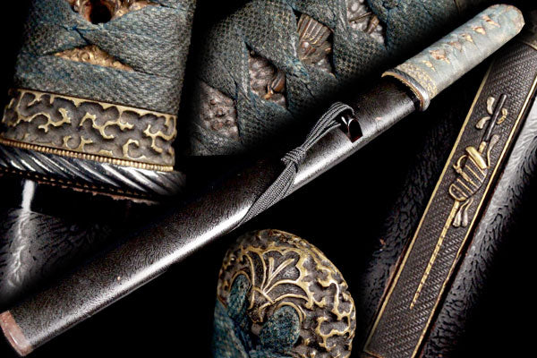 【喜】長寸約104㎝!! 身幅有柄鞘約4㎝m!! 赤銅大振菊紋縁頭!! 獅子目貫!! 菊紋銀覆輪の素晴らし鍔!! かなり良き刀用拵‼ 刀装具!! 111118