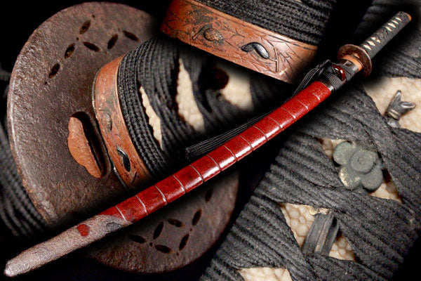 【喜】透かし象嵌肥後鍔!! 赤銅家紋目貫!! 時代高級鞘!! かなり素晴らしき肥後拵え!! 刀装具!! 109384-111087