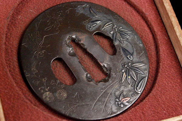 | 【喜】赤銅に花図大振りの鍔!! 刀装具武具!! 木箱 111424 | - |