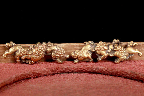 【喜】3匹獅子金目貫‼ 刀装具武具‼ 木箱‼ 111430 -