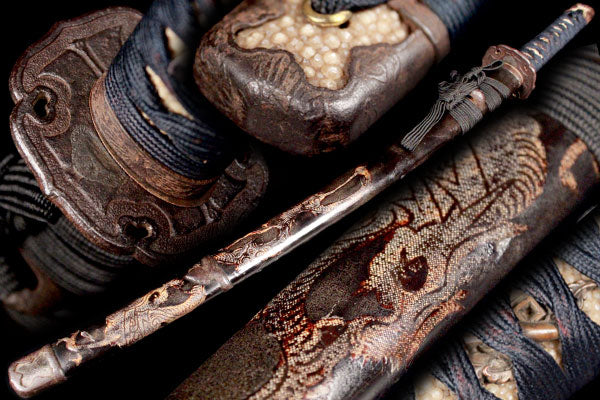 【喜】大珍品!! 龍鮫研ぎ出し鞘に鉄太刀鍔の素あbらしき半太刀拵え‼ 刀装具!! 110688 | - |