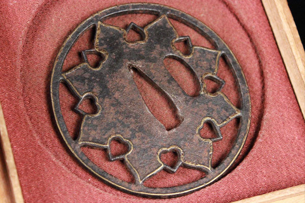 | 【喜】珍品!! 鉄に象嵌変わり見事な透かし鍔!! 刀装具武具!! 木箱 112636 | - |