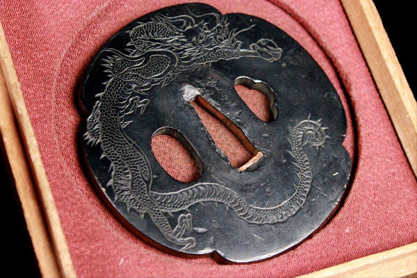 | 【喜】銅に赤銅‼ 大振り‼ 木瓜龍鍔!! 刀装具武具!! 木箱 112339 | - |